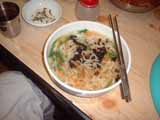 特記すべきこともなく列車は釜山駅に到着し,先に着いていた日本からの2人と再会.すでに14時を回っていたこともあり,相当お腹が空いていて,2人もまだ何も食べていないというので,近くの食堂に入って思い思いのものを注文.私はカルグクス(うどん,きしめん,またはラーメンのようなもの.写真 95)を食べる.