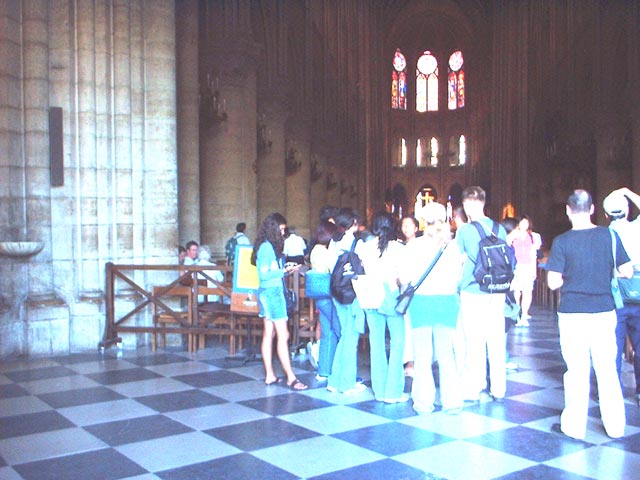 シテ島では,手始めにノートルダム大聖堂 Cathédrale Notre-Dame de Paris (写真 55)へ.観光客多すぎ(写真 56)だけれど,重厚長大で荘重なゴシック建築を楽しむ.最高裁判所 Palais de Justice へ行って(写真 57.土曜日につき建物内部の見学は不可だった),サントシャペル Ste-Chapelle へ.こちらもゴシック建築ながら,旧約の物語を表したステンドグラスが華を添えている.