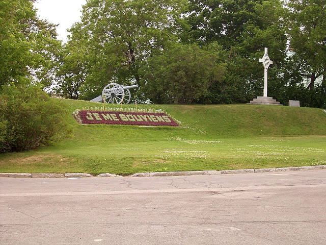 シタデル Citadelle へ(写真 42).9時に開場.イギリス統治下において米国の攻撃への防備のために建設されたフランス式の要塞で,函館の五稜郭と同様,星形をしている.この要塞は現在も陸軍の駐屯地として使用されているため,見学はガイドツアーのみで可能.ちなみにここに駐屯している連隊は,歩兵連隊としては唯一フランス語を公用語とする部隊なのだとのこと.中庭にはケベック州の標語,Je me souviens(私は忘れない)をかたどった植え込みがあることに気づく(写真 43).9時10分から英語とフランス語によるガイドツアーがあり,私は英語の方に参加することにした.写真 44の建物は,現在は小さな展示場として使われているのだけれど,不整形の石をモルタルの目地でつないだ壁が目を引く.シタデルが作られる前のフランス統治時代の建物なのだという.それから,総督(女王の代理人)の公邸(写真 45.もう1か所はオタワにある)もシタデルの中にあるのだった.展望台からの眺めを楽しんだ後,10時からの衛兵交替を観覧する(写真 46の白い子ヤギは連隊の象徴なのだという).音楽隊によるドリル演奏も入ってにぎやかだ(写真 47,音声).式の進行はフランス語のみで,正直いってほとんど聞き取れなかったけれど,解説アナウンスは仏英両言語で行われた.